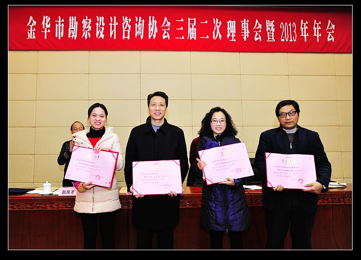 2014年1月10日下午,金華市勘察設(shè)計(jì)咨詢協(xié)會(huì)三屆二次理事會(huì)暨2013年會(huì)在市文化中心西區(qū)304會(huì)議室隆重召開。會(huì)議由協(xié)會(huì)副理事長兼秘書長趙良才主持。全市50多家理事單位代表參加會(huì)議。市住房和城鄉(xiāng)建設(shè)局建筑節(jié)能與科技設(shè)計(jì)處許春福處長出席會(huì)議。吳學(xué)敏理事長作了協(xié)會(huì)2013年工作總結(jié)和2014年工作意見的報(bào)告。會(huì)議為獲得2012年度金華市優(yōu)秀勘察設(shè)計(jì)項(xiàng)目和個(gè)人頒獎(jiǎng)。許春福處長就“四庫一平臺(tái)”、勘察外業(yè)見證、施工圖審查、節(jié)能評(píng)估和審查、勘察設(shè)計(jì)單位綜合考評(píng)、培訓(xùn)交流等工作做了布置。會(huì)議圓滿完成了各項(xiàng)議程。